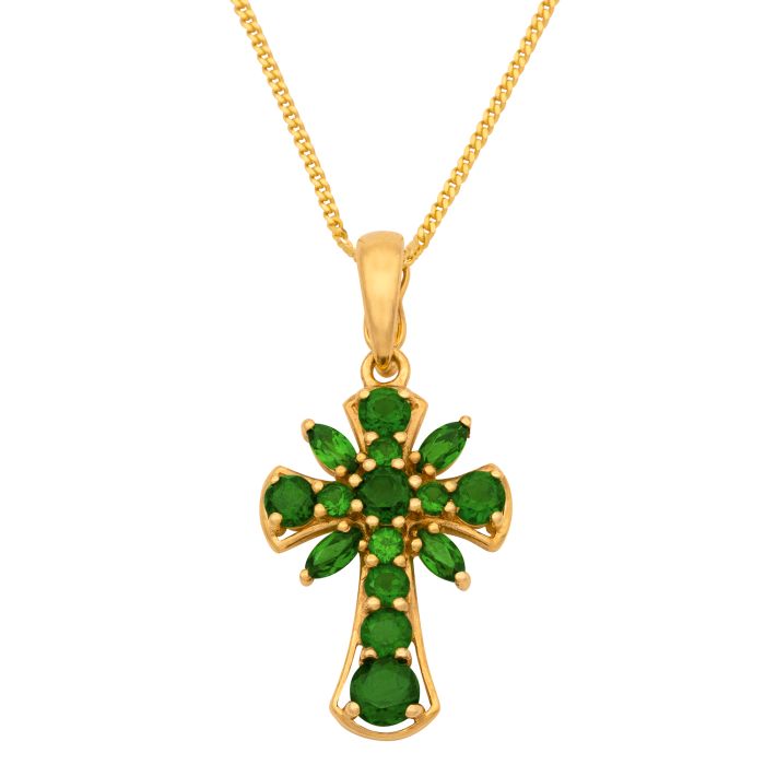 Kreuzanhänger mit Olivin – Kette 41 cm