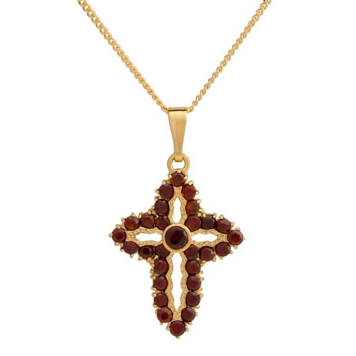 Kreuzanhänger mit Granatsteinen- zarte Flachpanzerkette