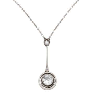 Auf der geschwungenen, breiten Stelle ist mittig ein schöner Altschliffdiamant von ca. 0,25 ct gefasst.