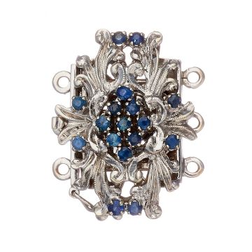 • Perlkettenverschluss für 3-reihige Perlenketten in 18-karätigem Weißgold. Mit insgesamt 17 Saphiren.