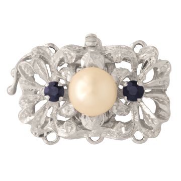 • Perlkettenverschluss in 750er Weißgold mit Perle und 2 Saphiren