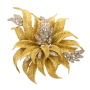 Die strukturiert reliefierten Blätter wirken matt mit einem zurückhaltenden Lichtspiel. Die in Weißgold gefassten Diamanten entfachen dagegen ein funkelndes Feuerwerk im Licht.