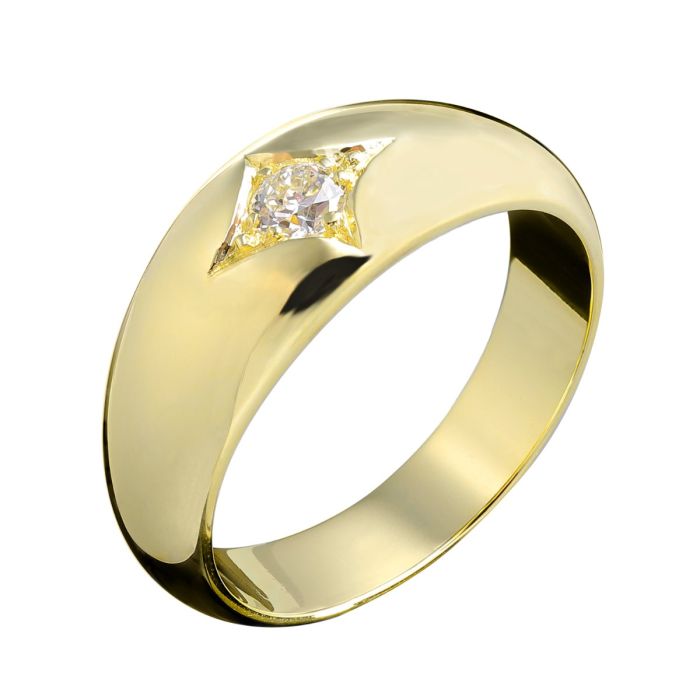 Mittig der Ringschiene schauseitig ist der Ring mit einem funkelnden Brillanten von 0,18 ct in einer sternförmigen Fassung besetzt.