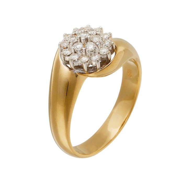 Zeitloser Brillantring in schwerer Ausführung mit getrepptem blütenförmigen Ringkopf vollständig ausgefasst mit 19 Brillanten zus. ca. 0,30 ct. (W, Si-P1).