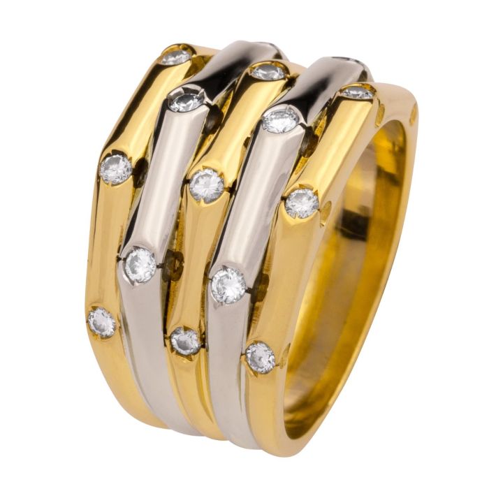 Massiver Damenring in 750er Bicolour Gold mit Brillanten