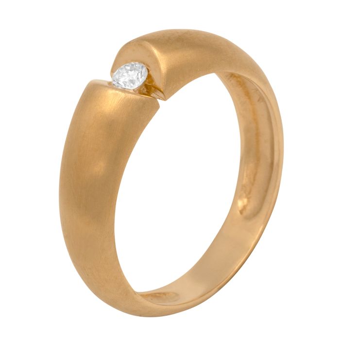 Der Ring in 14-karätigem Gelbgold ist komplett mattiert gearbeitet.