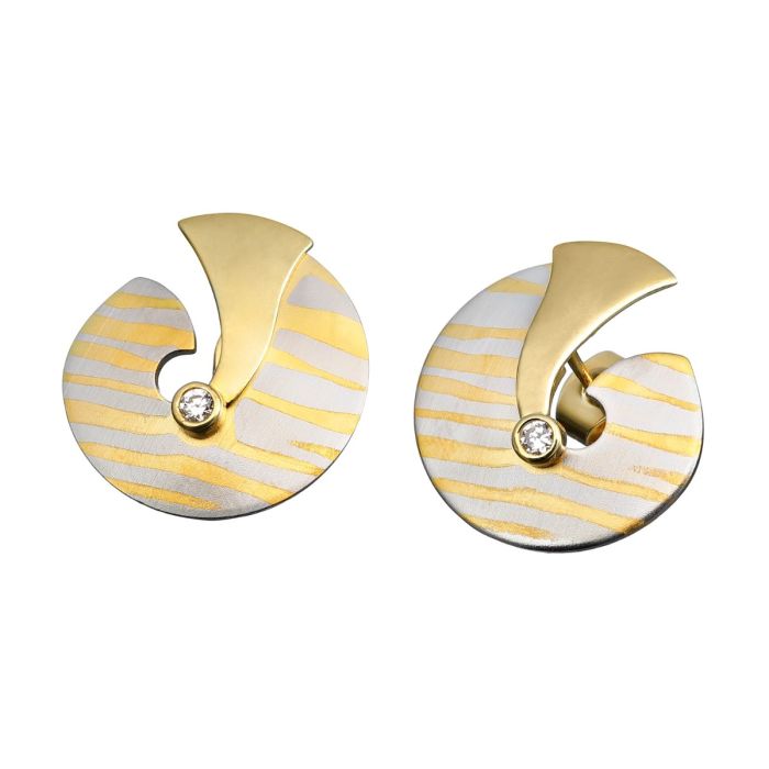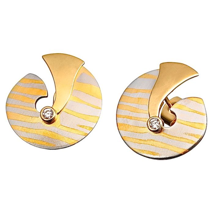 Modern designte Ohrstecker in Bicolor aus Edelstahl und Gelbgold.