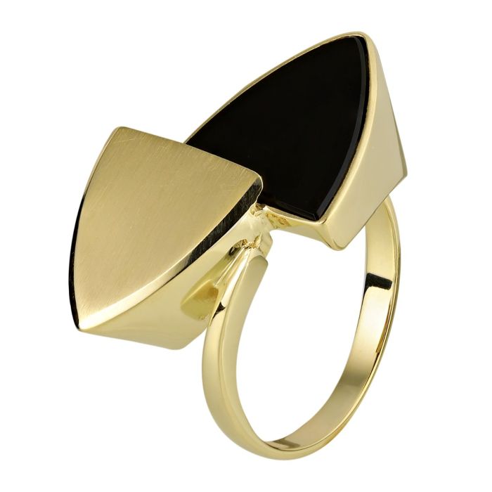 Moderner Damenring in 585er Gelbgold, der schauseitig 2 dreieckige Elemente aufweist.