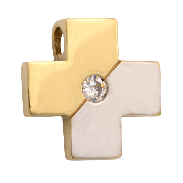 Moderner Kreuzanhänger – Bicolour – mit Brillant von 0,10 ct