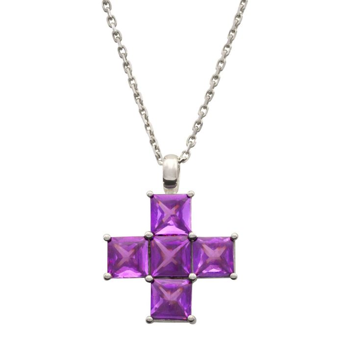Das Kreuz hat 5 funkelnde, violette Zirkonia als Zierde.