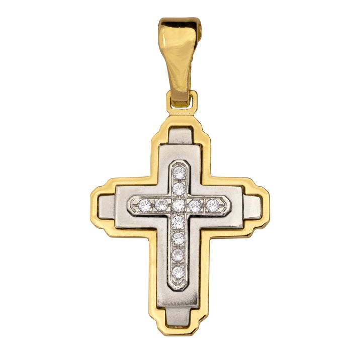 Modernes Kreuz in 585er Bicolor Gold und 11 Zirkonia