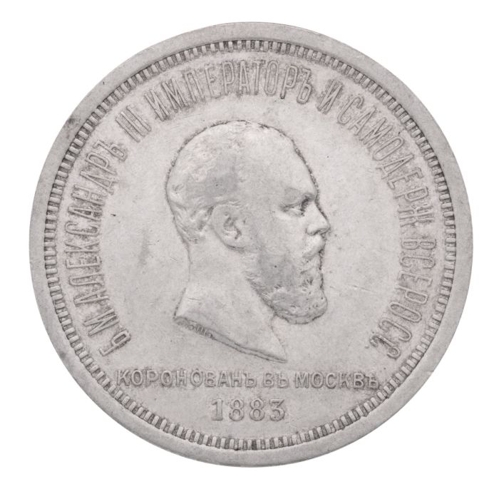 Avers: Profil des russischen Kaisers Alexander III. (1881-1894) nach rechts, mit kyrillischer Legende und Jahreszahl.