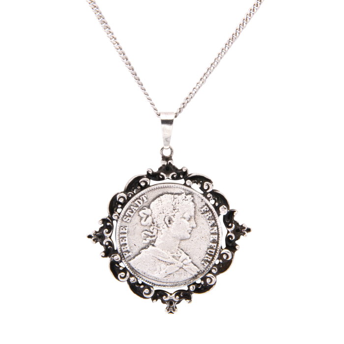 Fassung in 835er Silber gearbeitet für eine 900er Silbermünze.