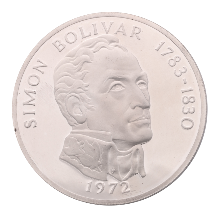 Revers: Profilbild in Dreiviertelansicht mit hohem Kragen und Umschrift SIMON BOLIVAR 1783-1830, 1972.