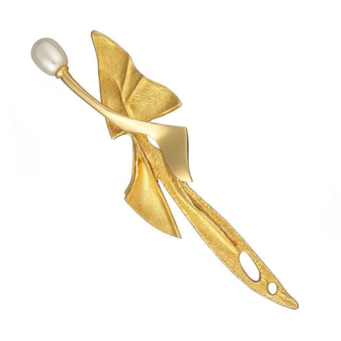 Das phantasievolle Design des Schmuckstückes wird von den unterschiedlichen Oberflächenbearbeitungen unterstrichen.