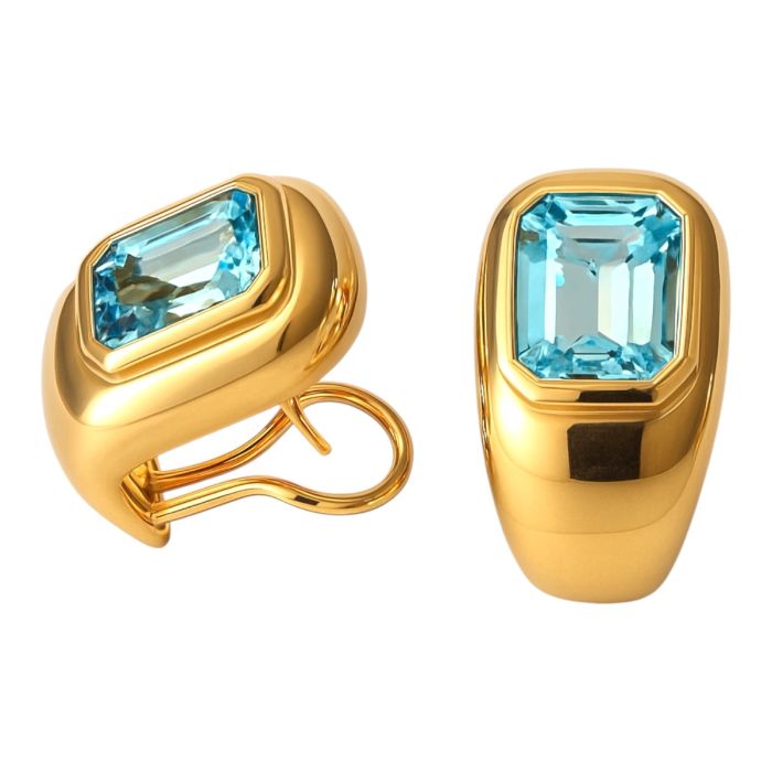 Traumhaft funkelnde Blautopase im Emerald-Schliff strahlen dem Betrachter entgegen.
