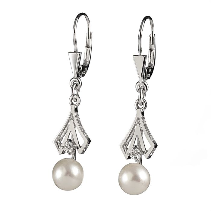 Paar Ohrhänger mit Diamanten und Zuchtperlen