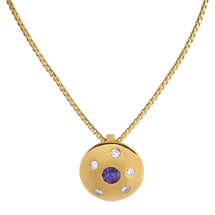 Prachtvoller, runder Anhänger mit Saphir und Brillanten – Venezianerkette