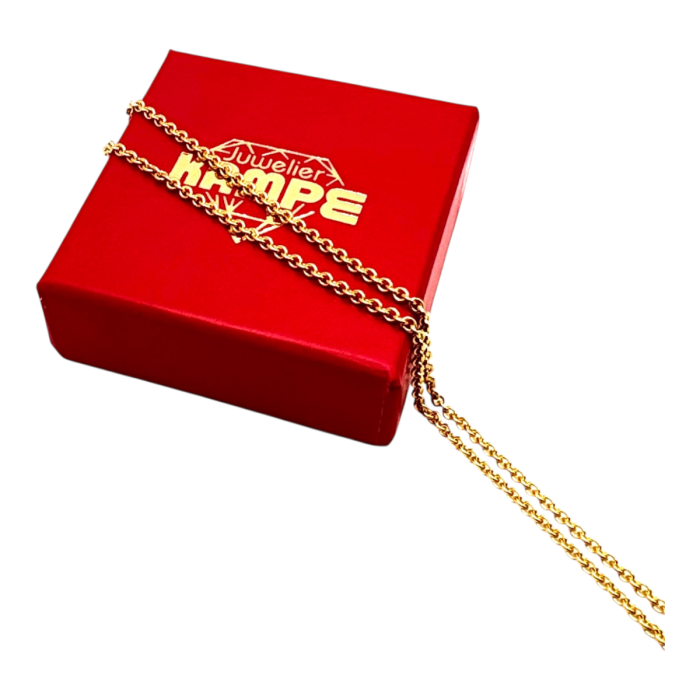 Die Damenkette aus 585er Gelbgold schmiegt sich sanft an Ihren Hals . Egal, ob Sie ein schickes Büro-Outfit stilvoll abrunden oder Ihre legeren Looks, die Sie in der Freizeit tragen, das gewisse Extra verleihen wollen– mit diesem Halsschmuck gelingt es Ihnen mühelos. Dank des Karabinerverschlusses lässt sich die Kette leicht anlegen und sicher tragen.