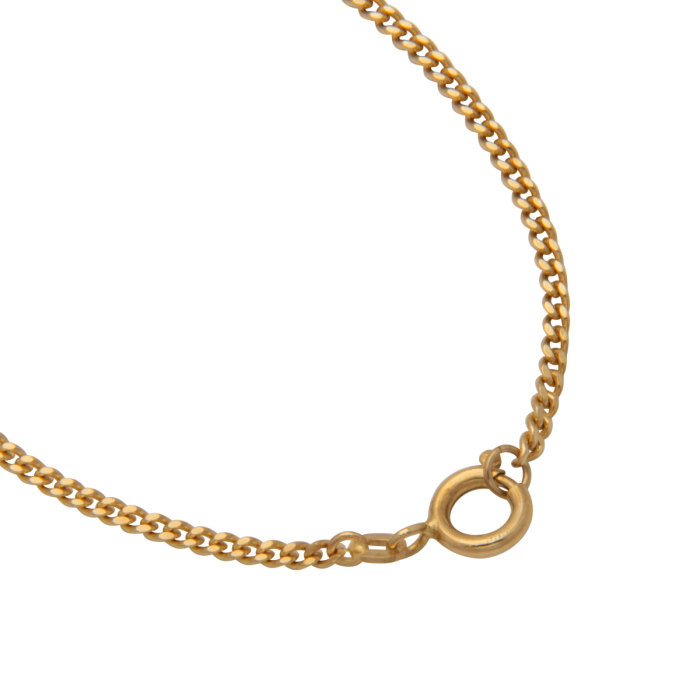 Die Kette in 14karätigem Gelbgold hat eine zwei-seitig angeschliffene Rundpanzergliederung, auch bezeichnet als „diamantiert“.