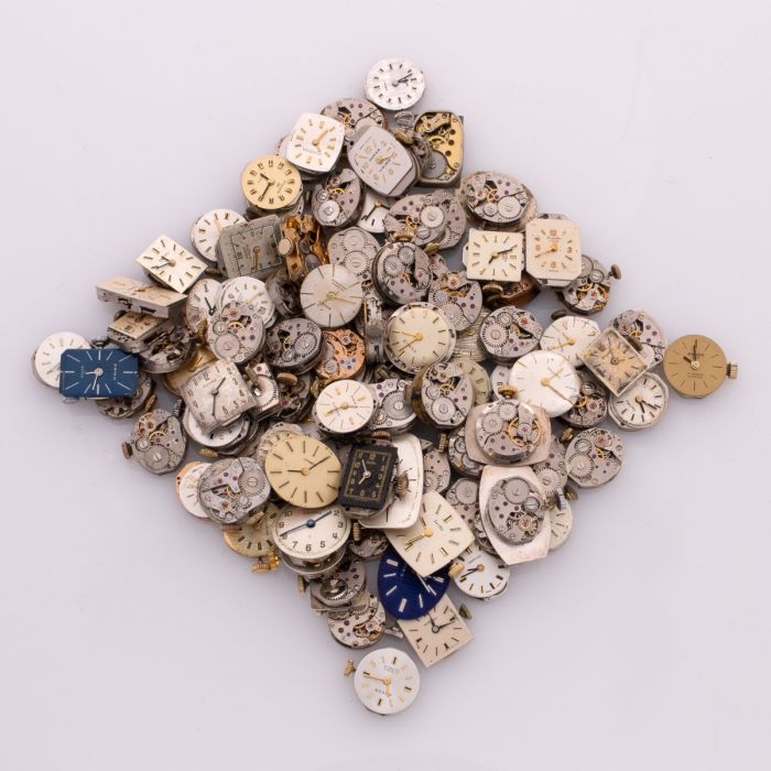 Sammlung von 100 mechanischen Uhrwerken für Damenuhren der Marken ANKER, DUGENA und ZENTRA zwischen 1950 und 1975