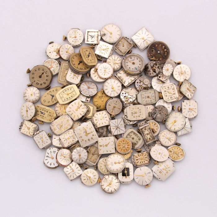 Sammlung von 88 mechanischen Uhrwerken für Damenuhren mit Schraubenunruh zwischen 1950 und 1970