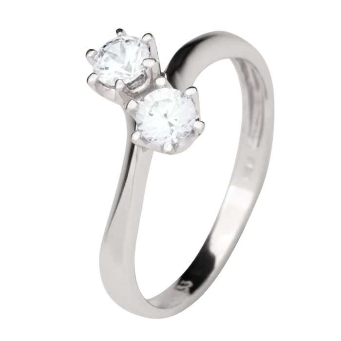Schicker Damenring in 333er Weißgold mit 2 funkelnden Zirkonia