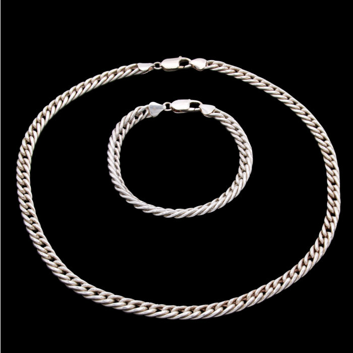 Panzerkette und Armband als Set in 925er Silber.