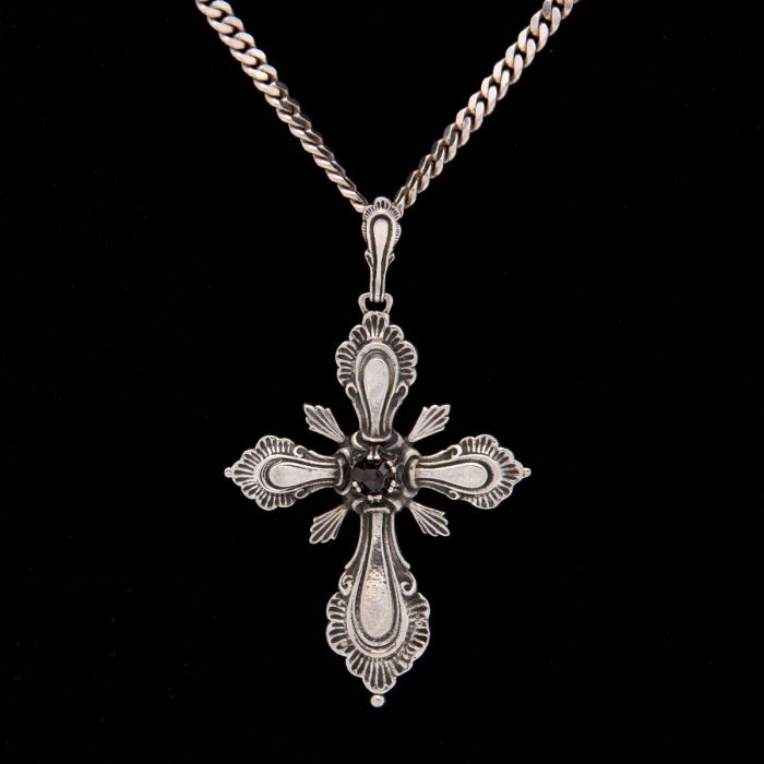 Schwerer Kreuzanhänger an massiver Kette in 925er Silber