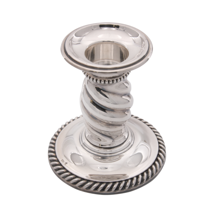 Der schöne Kerzenständer aus der Mitte des 20. Jahrhunderts trägt die Herstellermarke der Gebrüder Deyhle / Schwäbisch Gmünd, die bereits 1820 eine Silbermanufaktur gründeten.