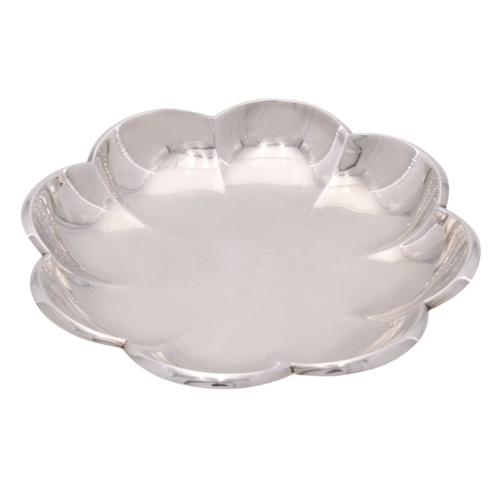 Die acht-passige runde Schale stammt aus der Silberwaren-Fabrik von Wilkens & Söhne in Hemelingen aus dem 1. Viertel des 20. Jahrhunderts. Sie trägt die Modellnummer: 7575 I.