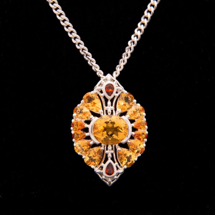 Eine Flachpanzerkette, ebenfalls in 925er Silber und hochglanzpoliert gearbeitet komplettiert den Halsschmuck.