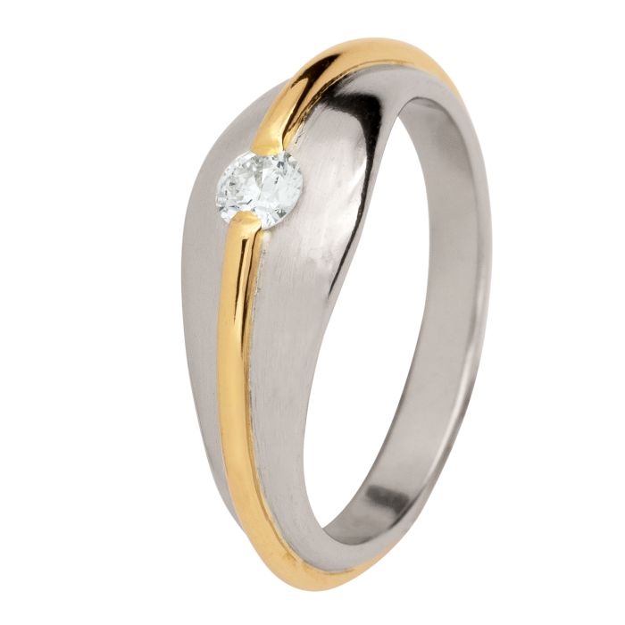 Sportlich eleganter Platin/Gold Damenring mit Brillant