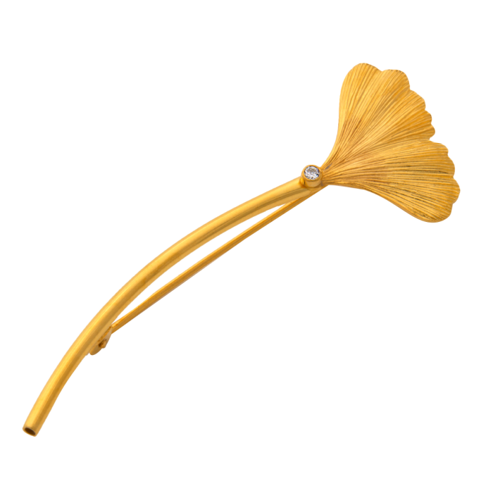 Stabbrosche- Ginkgoblatt in 333er Gold