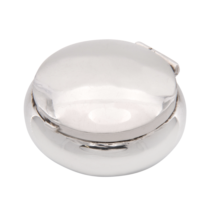 Die hübsche runde Pillendose ist aus Sterling Silber.
