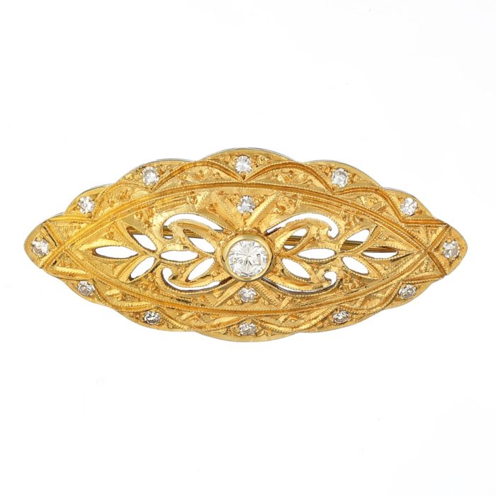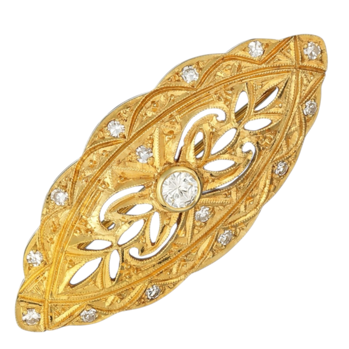 Navetteförmige Art Deco Brosche mit Altschliff-Brillant