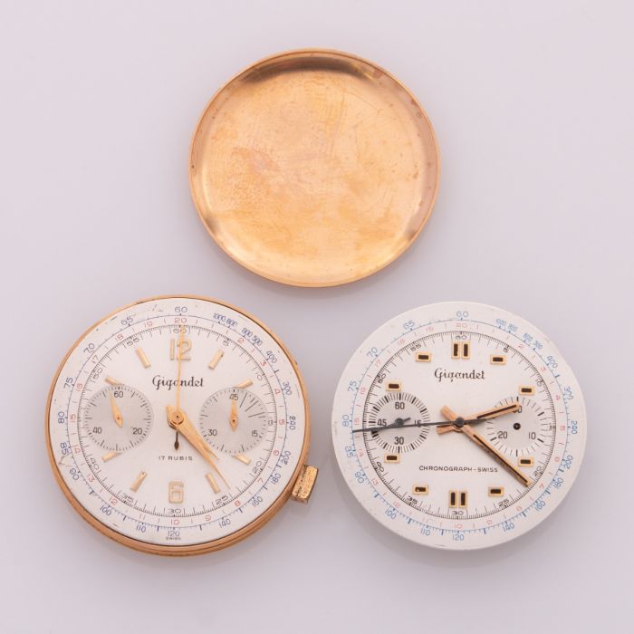 2 mechanische Chronographen-Uhrwerke GIGANDET zwischen 1960-1978