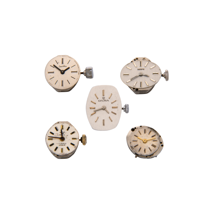 5 mechanische Uhrwerke für Damenuhren 1950 bis 1978