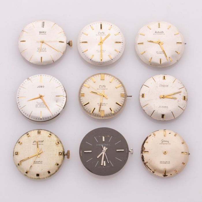9 Automatik-Uhrwerke für Herrenuhren unterschiedliche Marken und Kaliber zwischen 1963-1977