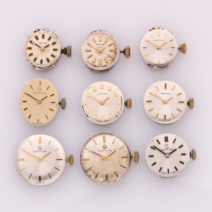 9 mechanische Uhrwerke für Damenuhren CERTINA diverse Kaliber zwischen 1960-65