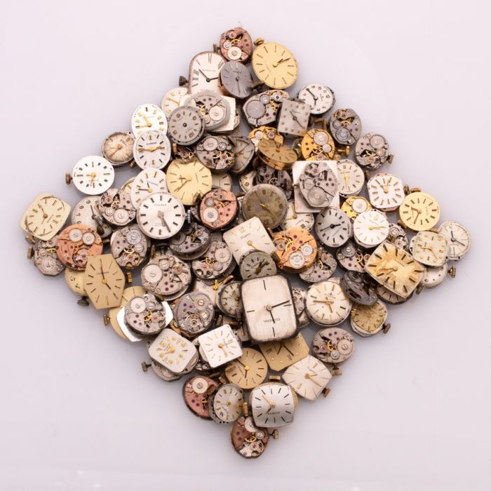 Sammlung von 99 mechanischen Uhrwerken der Marke DUGENA für Damenuhren zwischen 1950 und 1975