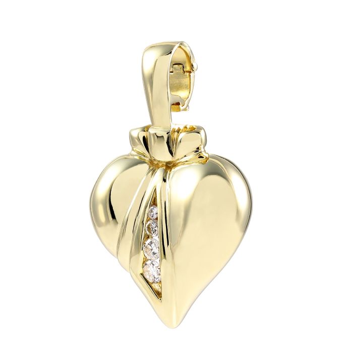 Vario-Clip-Anhänger "Herz mit Schleife" besetzt mit 4 Brillanten im Verlauf von zus. 0,25 ct. (W VSi-Si3). Hohe Öse, rückseitig mit Scharnierclip.