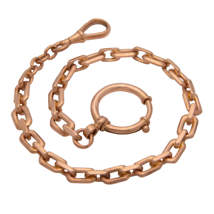 Massiver Vintage Taschenuhrenkette in 14 karätigem Rotgold. Die Kette hat eine grobe Ankergliederung.