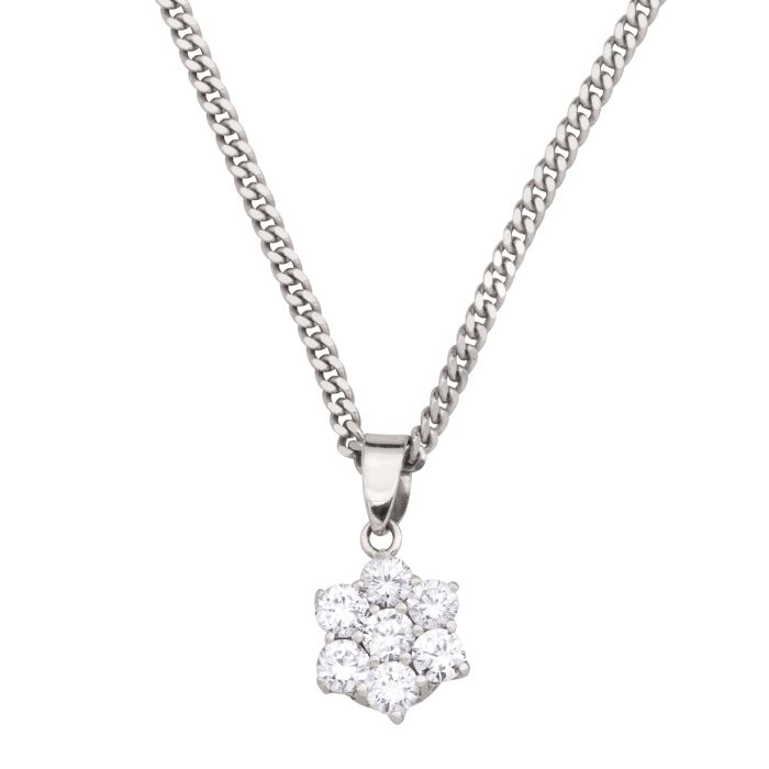 Weißgoldener blütenförmiger Anhänger mit Brillanten mit Kette