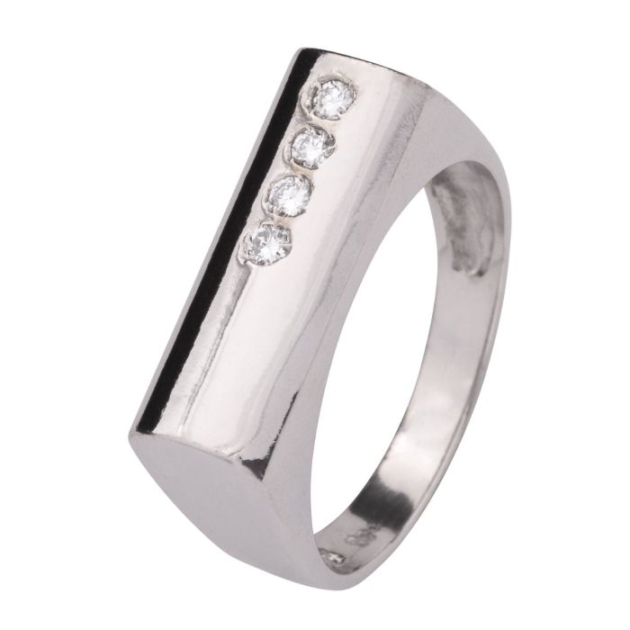 Seitlich sitzen 4 Brillanten aneinandergereiht in eingeriebenen Fassungen.