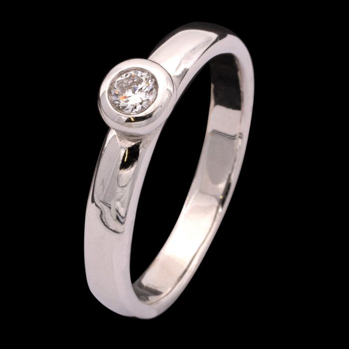 Weißgoldener Solitärring mit Brillant von 0,18 ct