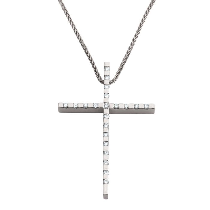 Weißgoldenes Kreuz mit Brillanten und passender Halskette
