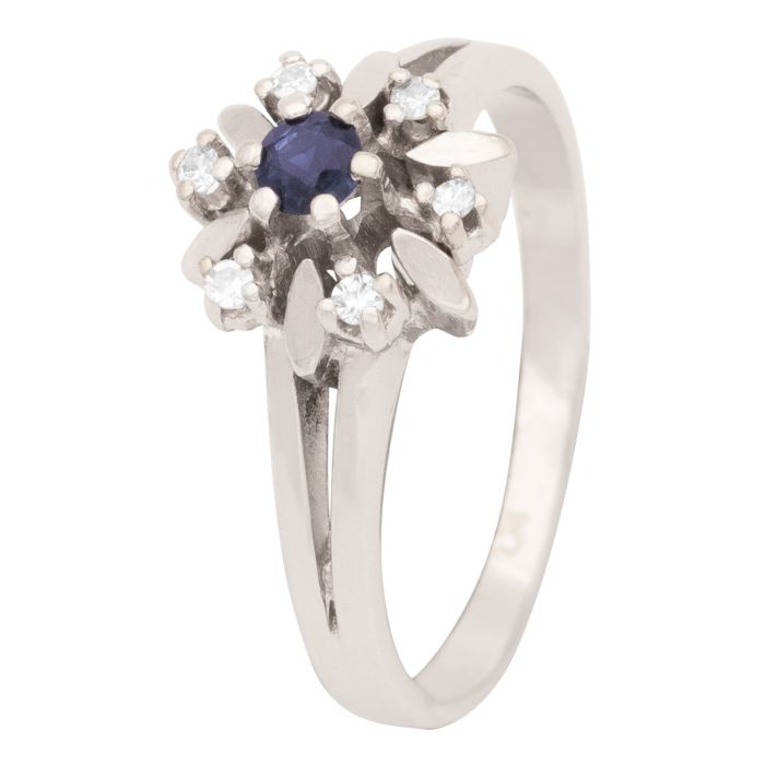 Weißgoldring aus den 50er Jahren mit Brillanten und Saphir