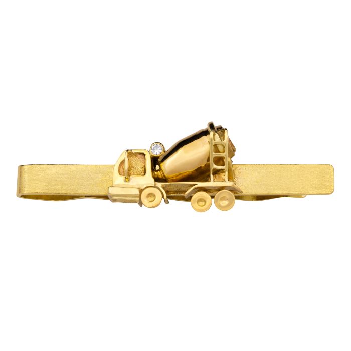 Witzige Krawattenklemme in Form eines Betonmischer-LKW in 14-karätigem Gelbgold.