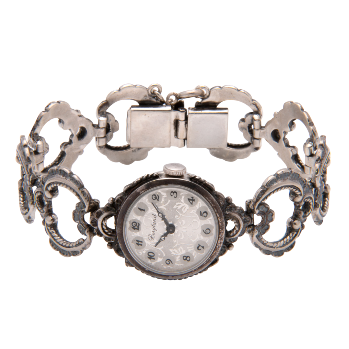 Hübsche Damenuhr in 835er Silber. Das Armband hat ein typisches Trachtendekor.